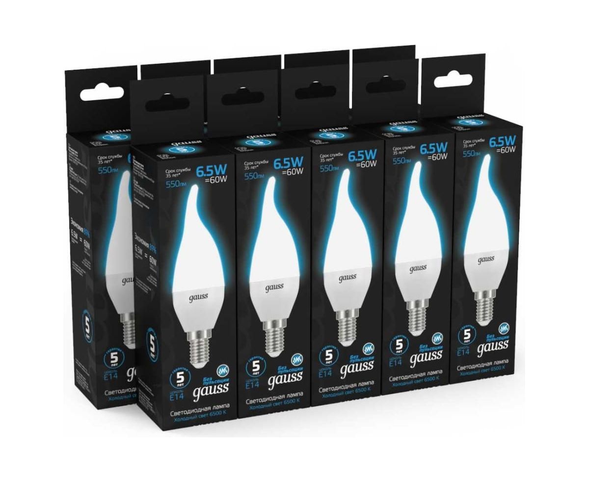 Лампа светодиодная Gauss 104101307 6.5Вт цок.E14 свеча 220B 6500K св.свечения белый холодный уп/10шт
