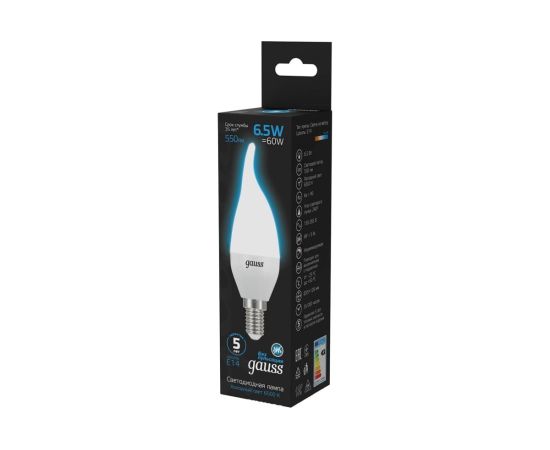 Технические характеристики Gauss Свеча на ветру 6.5W 550lm 6500K E14 LED 104101307
