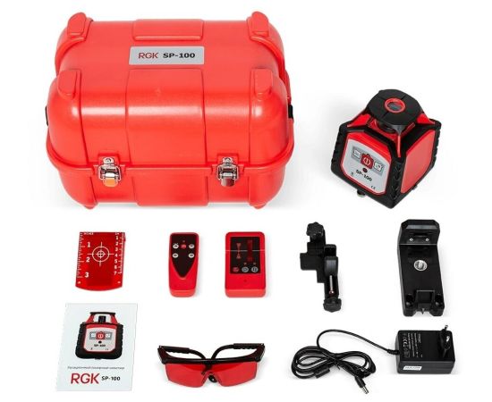 2.Комплект поставки включает в себя все необходимое для того, чтобы приступить к работе лазерным нивелиром RGK SP-100 4610011871399 незамедлительно.