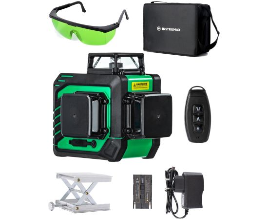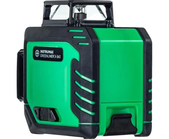 Лазерный уровень INSTRUMAX GREENLINER 3-360 SET IM0149 – модель с тремя взаимно перпендикулярными линиями. Имеет яркие зеленые лучи. Для построения замкнутых линий (360°) используется специальный излучатель.