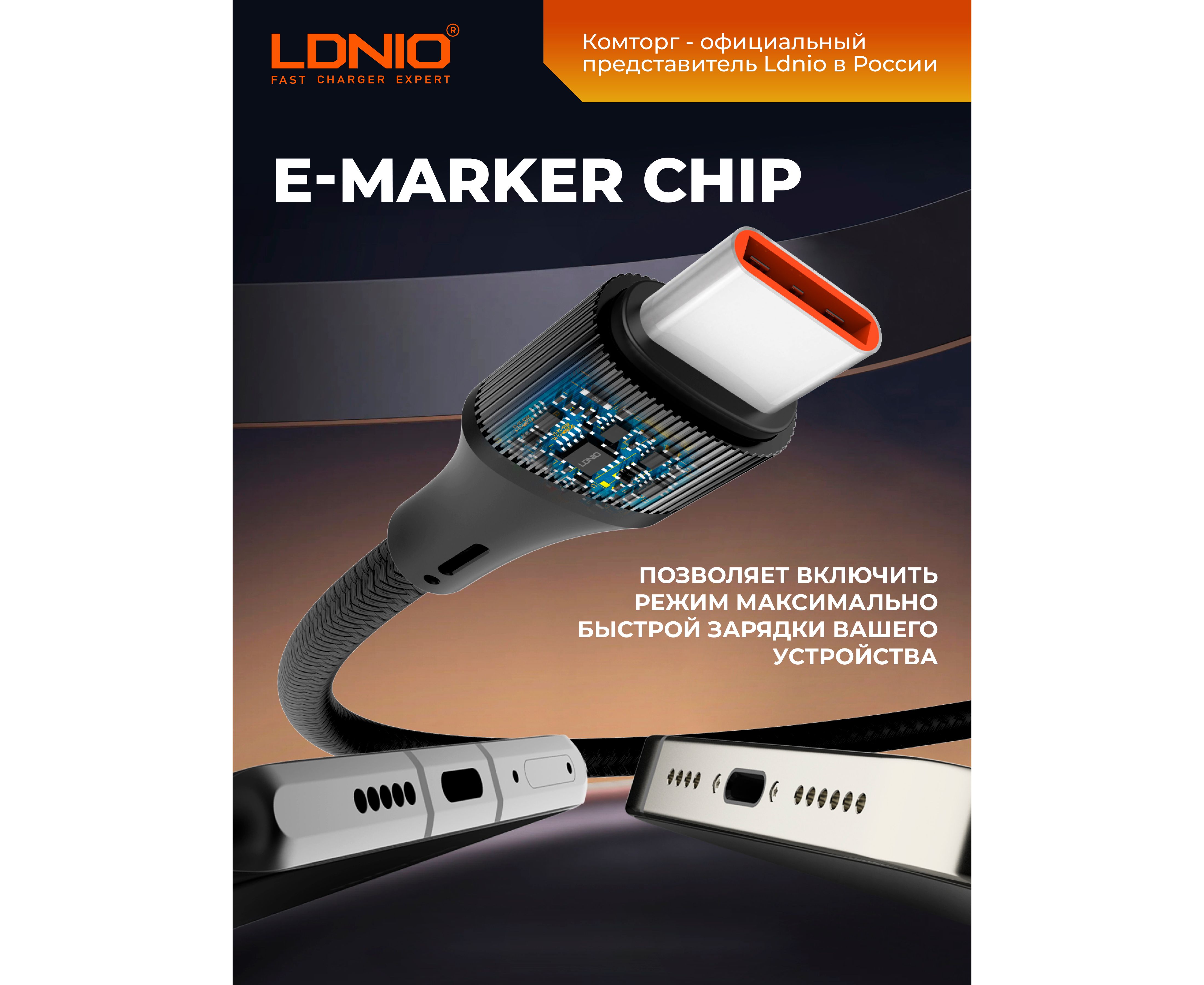 Кабель LDNIO LC632C-100W/ USB PD: Type-C--Type-C/ 2m/ 100W High power/ E-marker chip/серый
