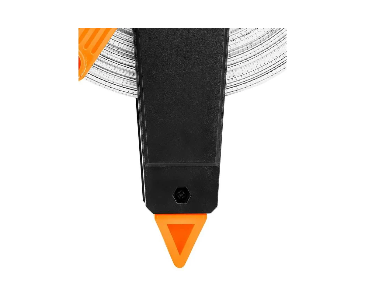 Рулетка измерительная стекловолоконная - это инструмент длиной 50 метров и шириной 13 мм. Изготовленная из стекловолокна, лента помещена в прочный пластиковый корпус. Он легко разматывается и втягивается. Кроме того, на корпусе имеется концевой крюк для закрепления ленты в почве. Это делает его особенно удобным для длительных измерений. Эргономичная нескользящая ручка облегчает