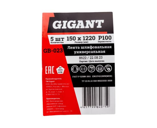 Лента шлифовальная Gigant GB-023 150x1220 100, 5 шт.