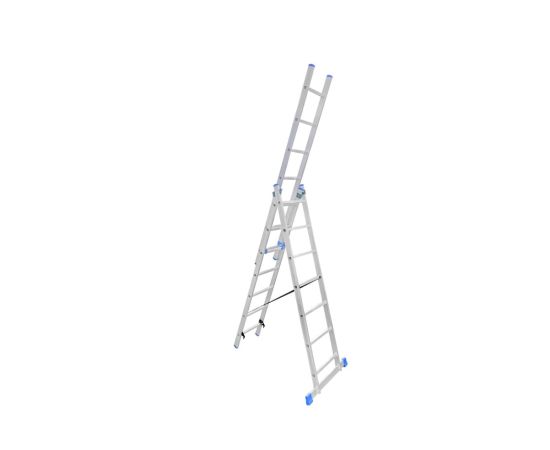 Алюминиевая трехсекционная лестница LadderBel 7 ступеней LS307 предназначена для выполнения строительных и монтажных работ на различной высоте.