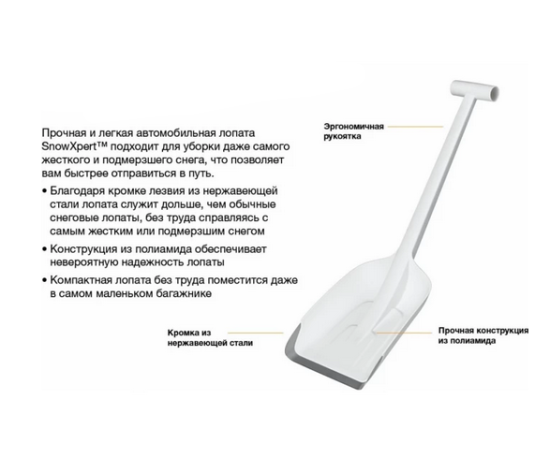 -Благодаря кромке лезвия из нержавеющей стали лопата служит дольше, чем обычные снеговые лопаты, без труда справляясь с самым жестким или подмерзшим снегом;
