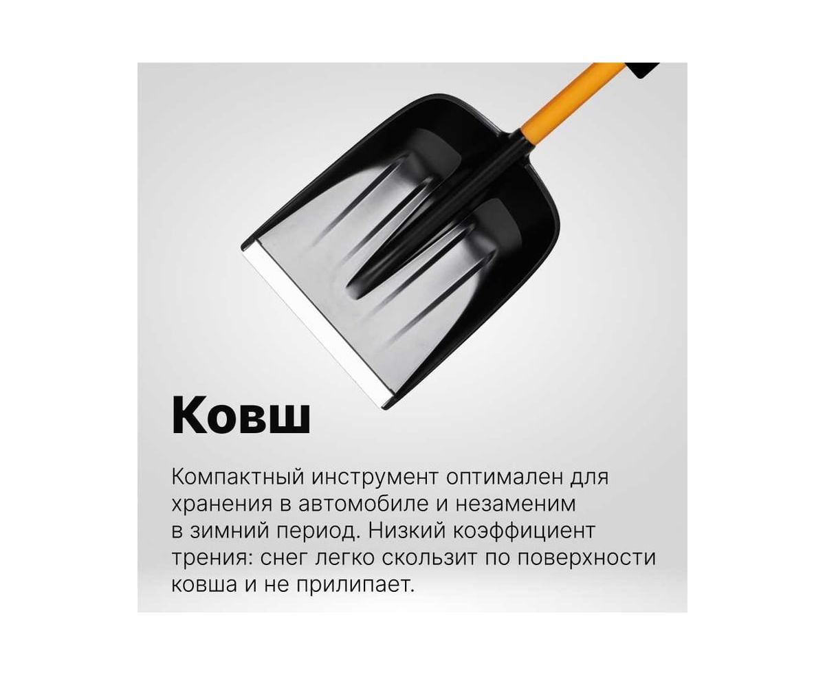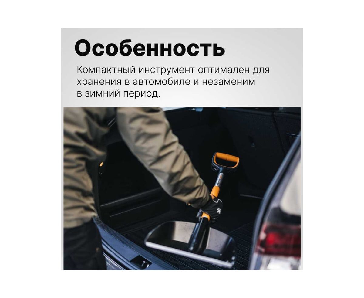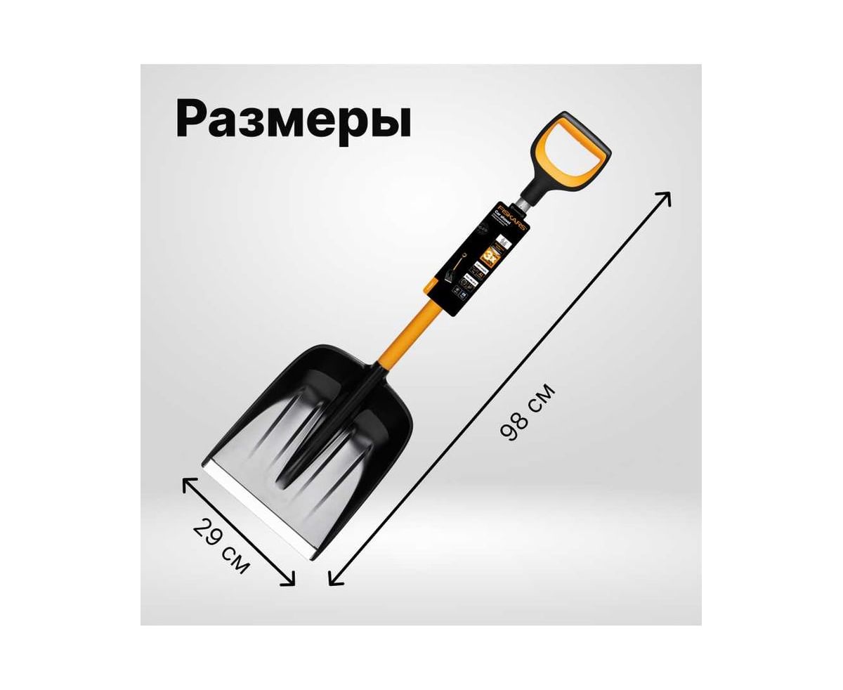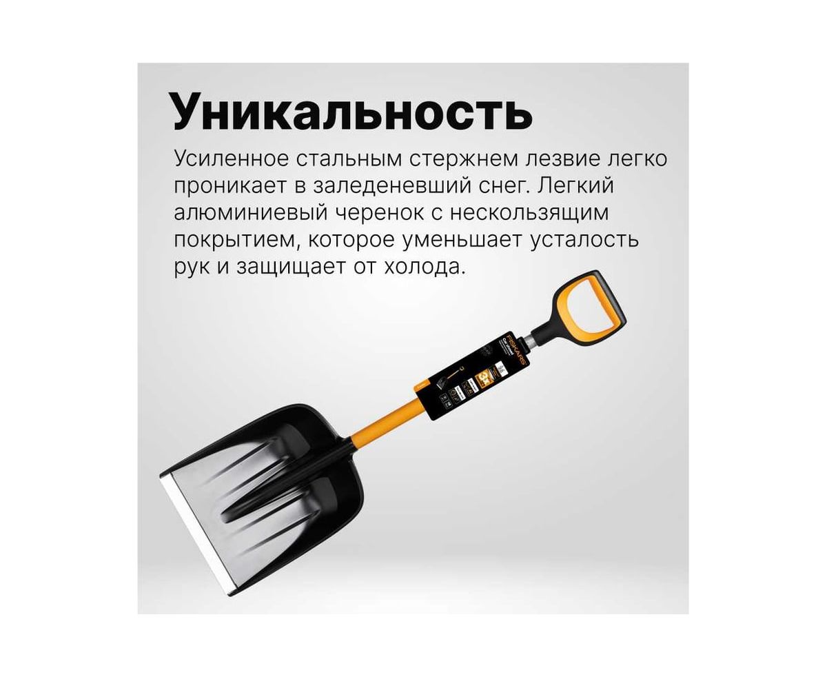 Автомобильная лопата Fiskars X-series 1057393 применяется для очистки территории от снега.