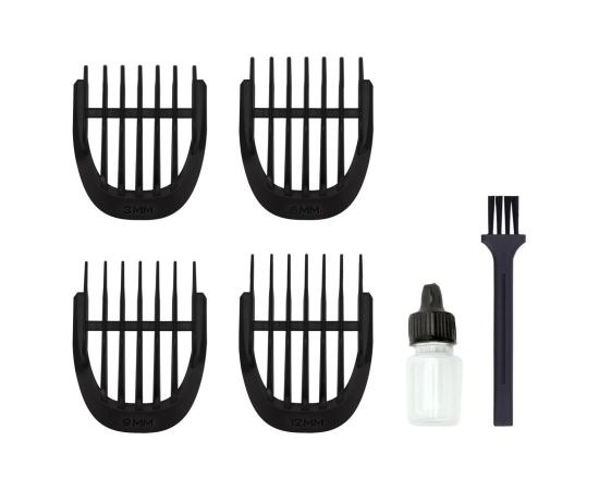 расческа, зарядное устройство, масло для смазки, щеточка для чистки