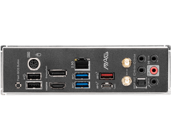 PS/2, 2 x USB 2.0, 2 x USB 3.2 Gen1, USB 3.2 Gen2, USB 3.2 Gen2 Type-C, HDMI, DisplayPort, RJ-45, S/PDIF (оптический)