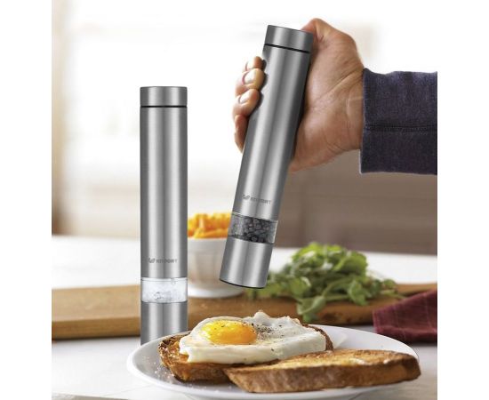 Набор мельниц Kitfort KT-2028 измельчает перец-горошек, соль и другие специи. Нет нужды молоть специи впрок. Мельница одновременно мелет и дозирует. Поместите её над блюдом и просто нажмите кнопку.