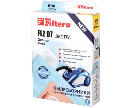 Мешки для пылесоса Filtero FLZ 07 (4 штуки) ЭКСТРА Bork, Zelmer