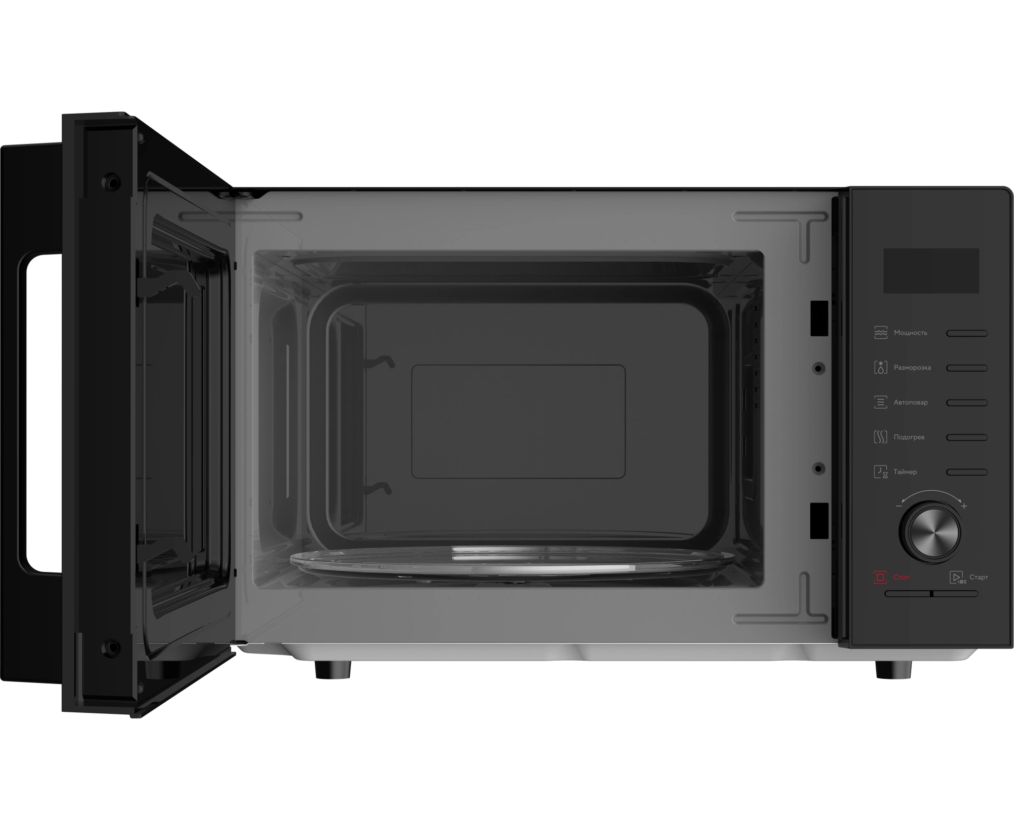 быстрый старт, звуковой сигнал окончания приготовления, кнопка +30 секунд, пауза, регулировка мощности