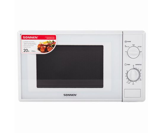Микроволновая печь SONNEN MW2070B-5MW, 20л, 700Вт, таймер, механическое управление, белая, 454654