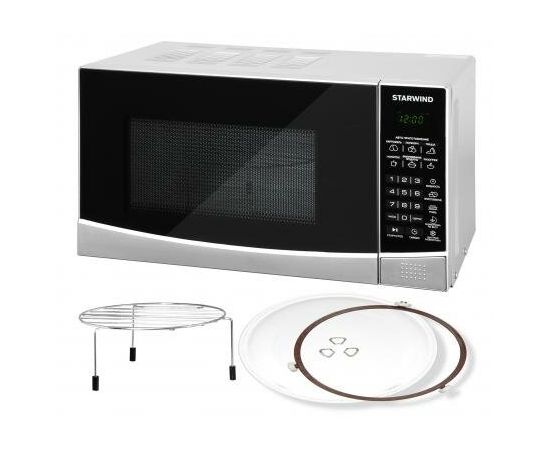 Наименование: Микроволновая печь; Возможность встраивания: нет; Внутренний объём: 20 л; Тип управления: электронное; Отображение информации: цифровой дисплей; Мощность микроволн: 700 Вт; Способ открывания дверцы: "кнопка"; Внутренее покрытие: эмаль; Диаметр поворотного стола (поддона): 24.5 см; Цвет: серебристый, чёрный; Особенности: гриль, автоматическая разморозка, автоматическое приготовление, блокировка от детей, режим разморозки; Прочие особенности и свойства: Стильная, мощная и многофункциональная микроволновая печь STARWIND SMW3120 станет незаменимым помощником на кухне для каждой хозяйки или в офисе. Данная модель выполнена в гармоничном дизайне классической формы. Основные цвета – черный и серебристый. Корпус прибора изготовлен из металла, передняя панель и дверца – из пластика. На верхней части и по бокам предусмотрена перфорация для вывода горячего воздуха, образующегося во время нагрева, что стоит учитывать в момент установки прибора. Открытие дверцы осуществляется с помощью кнопки, что позволяет задействовать всего один палец что актуально, если вы уже держите в руках блюдо, подготовленное для установки в СВЧ STARWIND., Относительно программного обеспечения, то данная печь может все! В ней предусмотрены следующие функции:, • Разогрев;, • Настройка мощности;, • Разморозка;, • Автоприготовление;, • Приготовление (задаются собственные настройки и набор режимов);, • Гриль;, • Быстрая разморозка;, • Таймер;, • Настройка часов., Среди программ имеется:, • Программы автоматического приготовления: картофель, попкорн, пицца;, • Разогрев;, • Замороженные продукты;, • Напитки.; Вес: 11,3