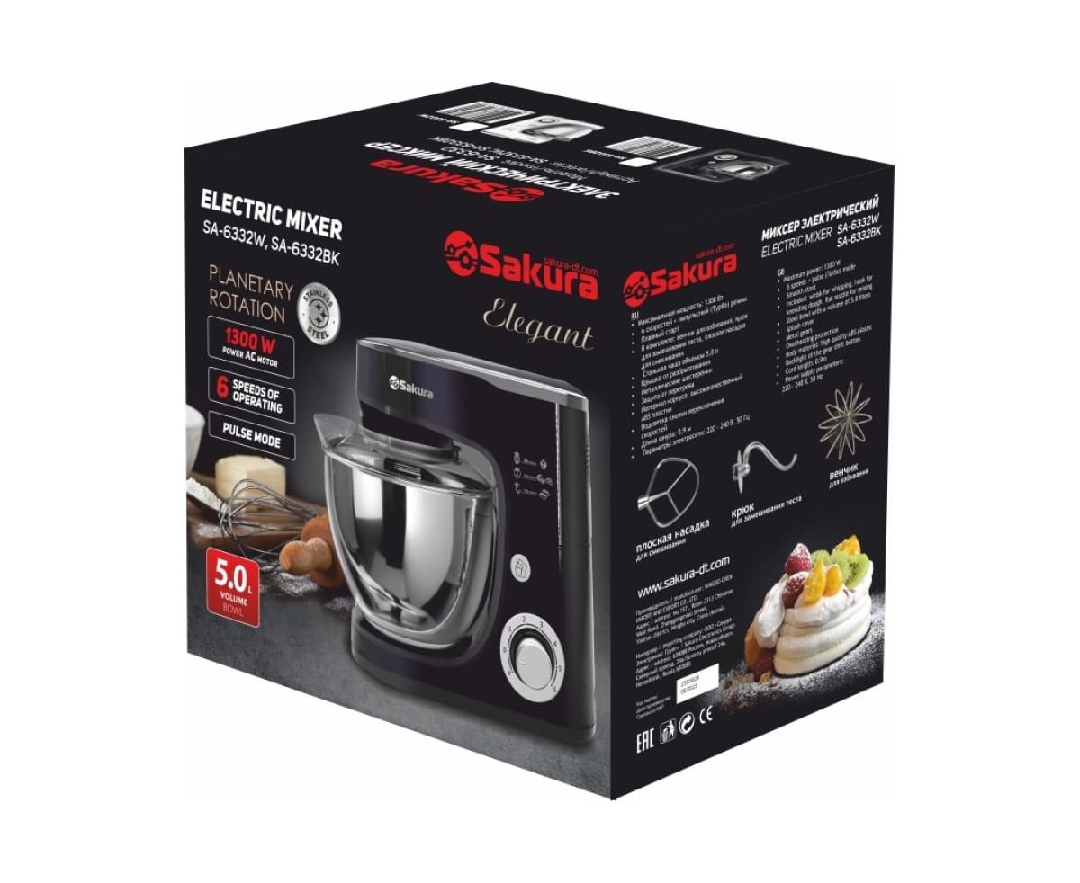 Миксер Sakura SA-6332BK Elegant с чашей планетарный