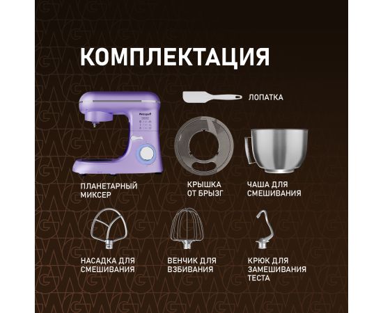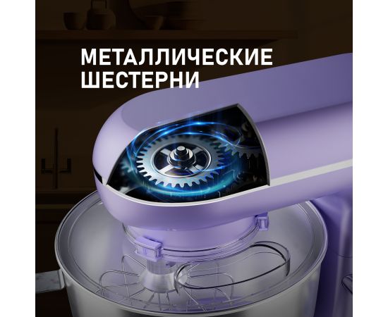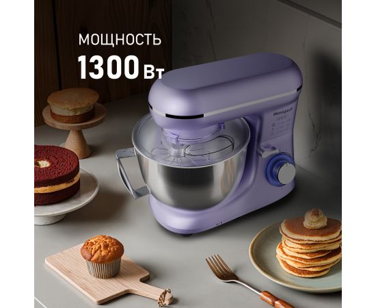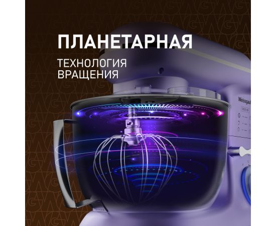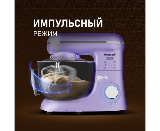 Электрический планетарный миксер от Weissgauff, обладающий впечатляющей мощностью 1300 Вт, оснащенный набором цельнометаллических насадок для теста и для смешивания, венчиком для взбивания, а также удобной чашей с крышкой - это незаменимый помощник на вашей кухне, который поможет вам воплотить в реальность самые смелые кулинарные идеи!