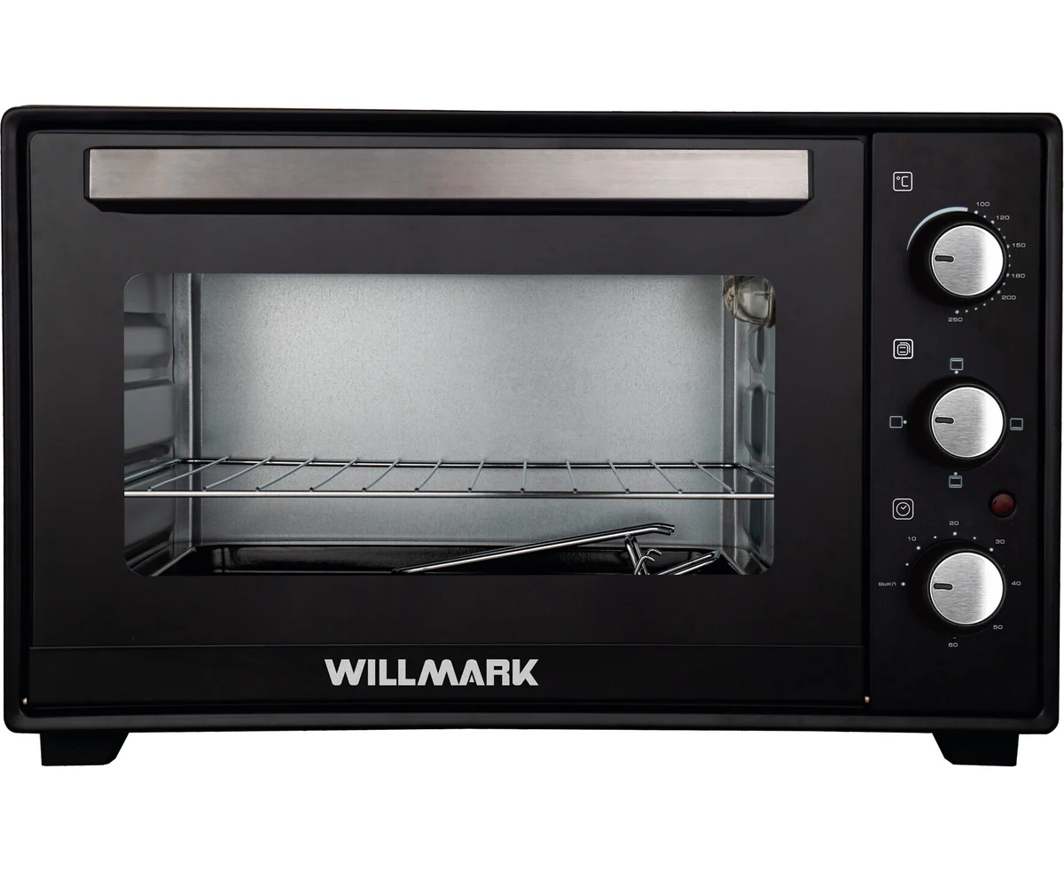 Мини-печь WILLMARK WCO-501BL (50л,2 стеклокерам.конф.1300+900Вт,лампа,4 линейных ТЭНа,черн.)
