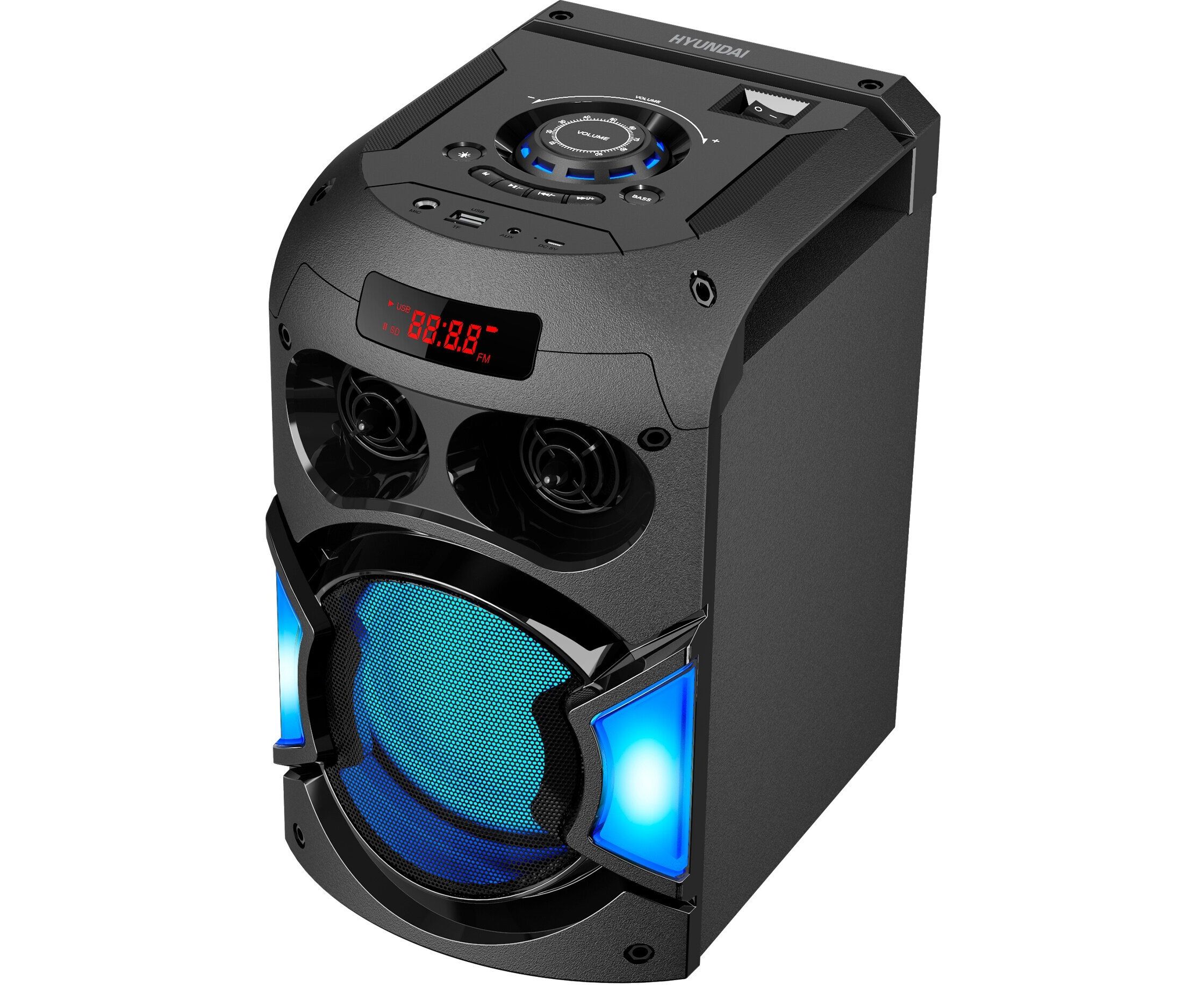 Портативный музыкальный центр Mini Hyundai H-MC1220 представлен в корпусе с оригинальным дизайном и качественным 60-ти ваттным звучанием. Функционал акустической системы позволяет прослушивать музыкальные треки, подключая мобильные гаджеты, ПК, ТВ, флеш-носители и другие устройства через выходы AUX, USB, microSD и дистанционно, через соединение Bluetooth 5.0.
