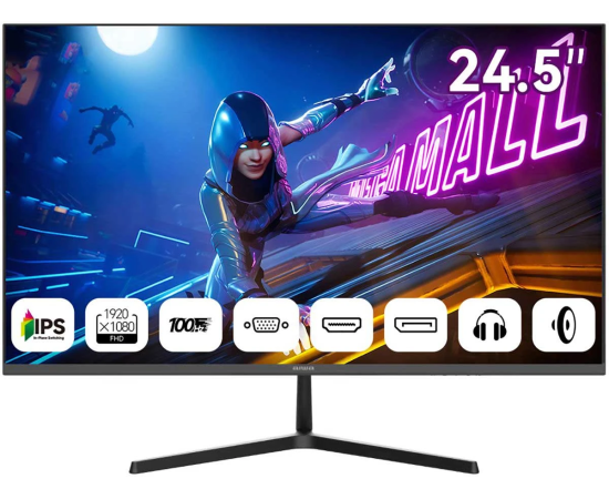 Монитор AIWA MD2512 Black IPS, 1920x1080, D-Sub+HDMI+DP, 4 ms, 178пр./178пр., 300 cd/m, 1000:1, 100Hz, Spk