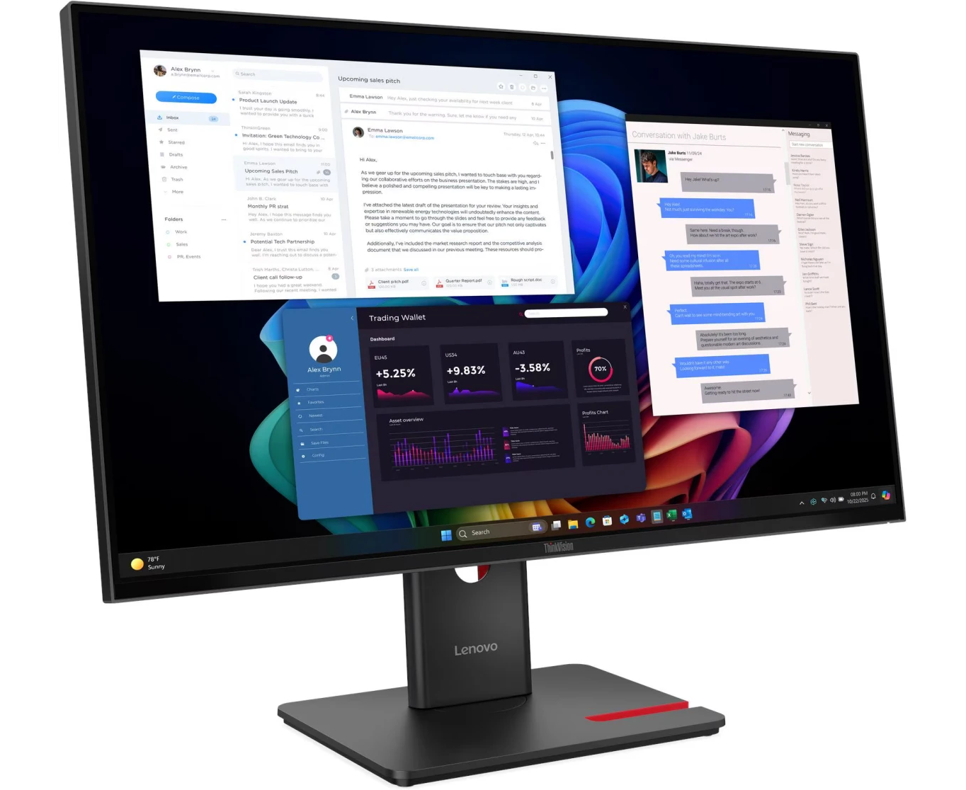 Монитор Lenovo T27UD-40 (64AFGAR2CB) 27" 16:9, IPS, UHD, 4ms, 350cd, 60Hz, HDMI, DP, USB, USB-C, HAS