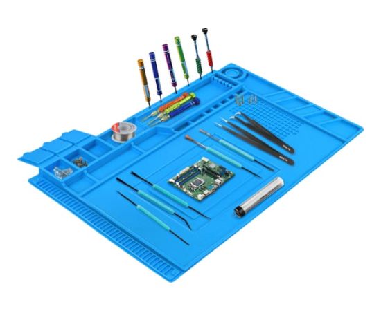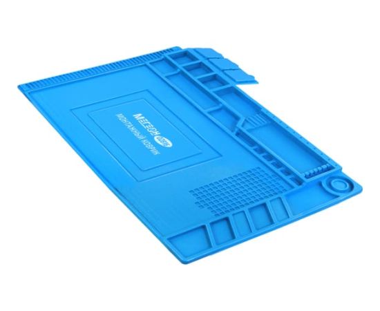 Монтажный коврик 02816 МЕГЕОН к0000026356 предназначен для предотвращения повреждения электро и радиоизделий статическим электричеством. Продуманная конструкция со множеством пронумерованных лотков позволит разместить большое количество компонентов. Дополнительно в поверхность были установлены 4 магнита для надёжной фиксации металлосодержащий элементов и комплектующих. Дополнительно имеются 3 лотка с крышками. В качестве материала был использован термостойкий силикон. Изделие одинаково может использоваться в профессиональной, научной и любительской областях.