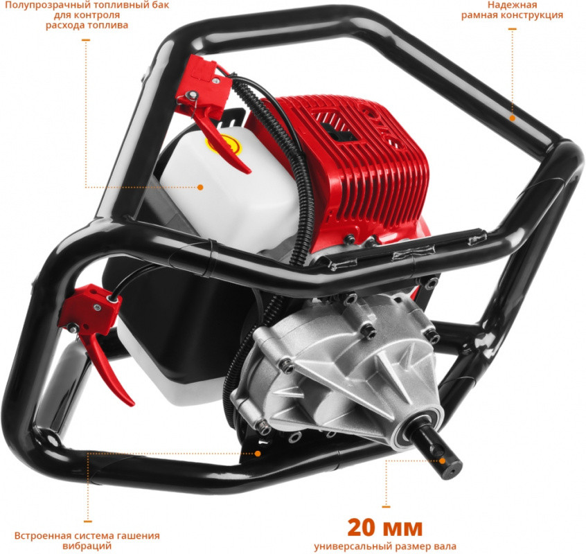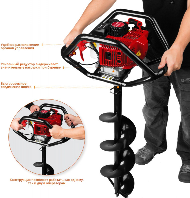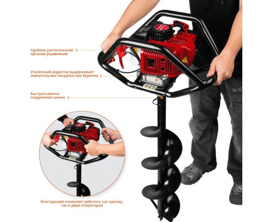 Описание: Универсальный мотобур оптимален к применению при монтаже столбов, заборов, ограждений и других целей связанных с бурением грунта. Конструкция рукоятки позволяет работать как одному оператору, так и двум одновременно, что повышает эффективность бурения