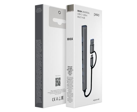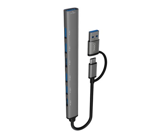 Мульти Хаб PERO MH04, USB-С/USB-A TO USB 3.0 + 6xUSB 2.0, серый