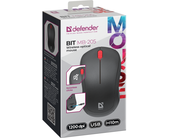 Мышь DEFENDER Bit MB-205 52205 USB Optical WRL, черная