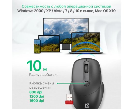 Мышь DEFENDER беспроводная Feam MM-296 черный (52296)