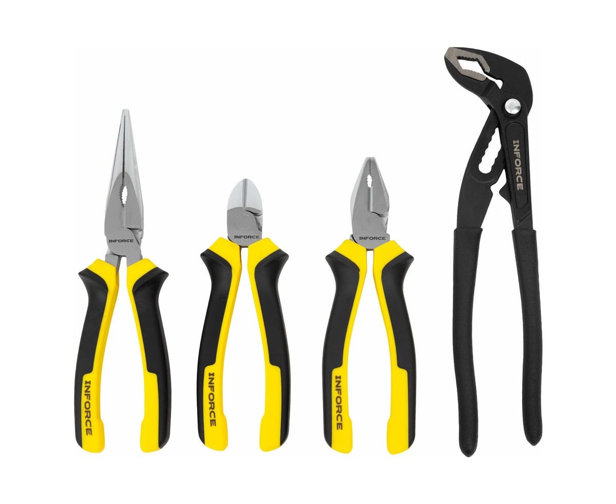 Набор губцевого инструмента Inforce 4 шт 06-25-06 - это профессиональный набор инструмента для слесарных и монтажных работ.