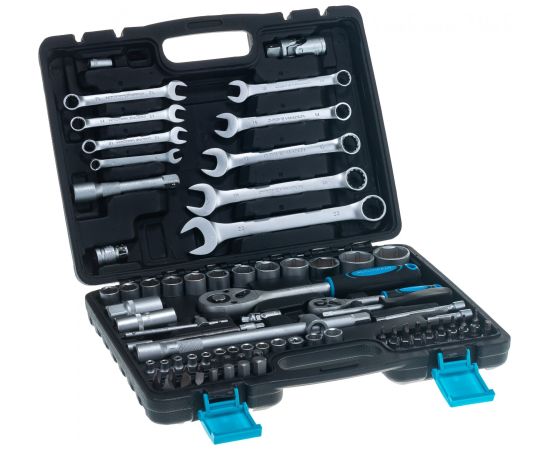 трещотка 1/4" 24 зубца 155мм, удлинители 1/4" 50, 100мм, удлинитель гибкий 1/4" 150мм, отверточная рукоятка 1/4" 150мм,вороток Т-образный 1/4" 115мм, карданный шарнир 1/4" 35мм, адаптер-переходник 1/4"SQх1/4"HEX 25мм, трещотка 1/2" 24 зубца, 255мм, удлинители 1/2" 125, 250мм, адаптер для воротка 3/8" - 1/2" 42мм, карданный шарнир 1/2" 70мм, держатель бит 1/2"