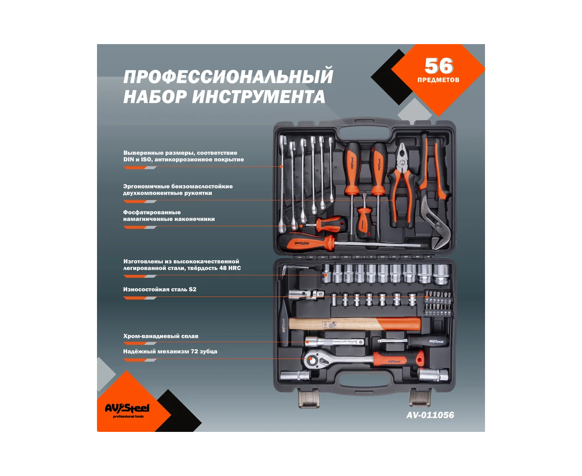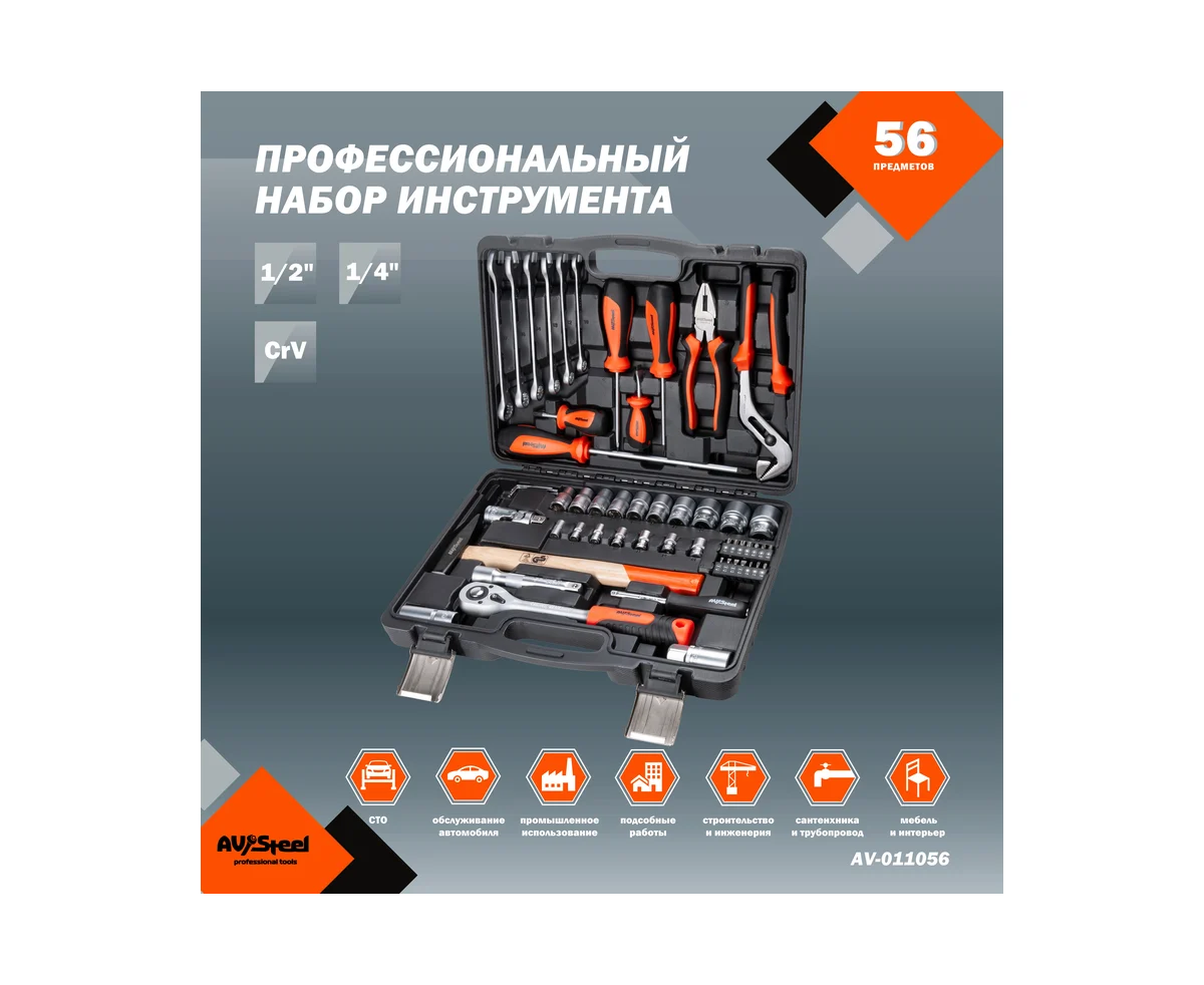 Набор инструментов Av Steel AV-011056 56 предметов (жесткий кейс)