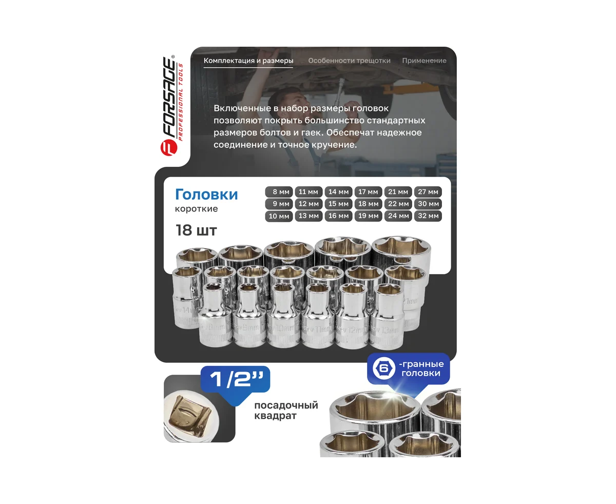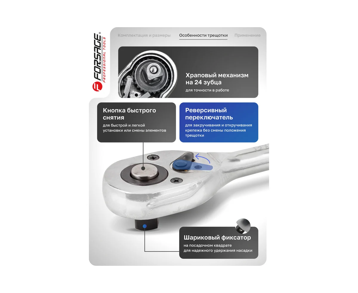 Набор инструментов Forsage F-4245B-5(57880) 24пр. 1/2" (6гр)