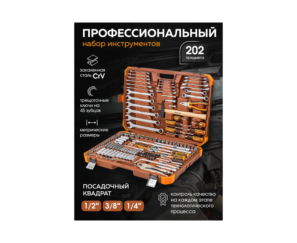 Набор инструментов FORSTIME FT-42022-5 (56911) 202пр. 1/4", 3/8", 1/2" (6гр.)