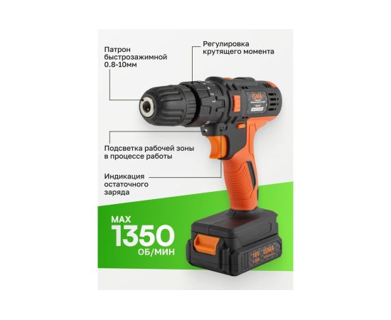 Надежная и производительная аккумуляторная дрель шуруповерт с набором сверл и кольцевых пил станет отличным подарком домашнему мастеру, дачнику и владельцу загородного коттеджа. Набор инструментов из 57 предметов в кейсе комплектуется самим шуруповертом на 16 Вольт, несколькими отвертками, молотком, плоскогубцами, кольцевыми пилами, сверлами и остальными нужными инструментами для монтажа. Для удобства хранения и использования набор инструментов отпускается в красивом эргономичном кейсе из пластика. Рекомендуемая первая зарядка аккумулятора для дрели-шуруповерта 24 часа.
