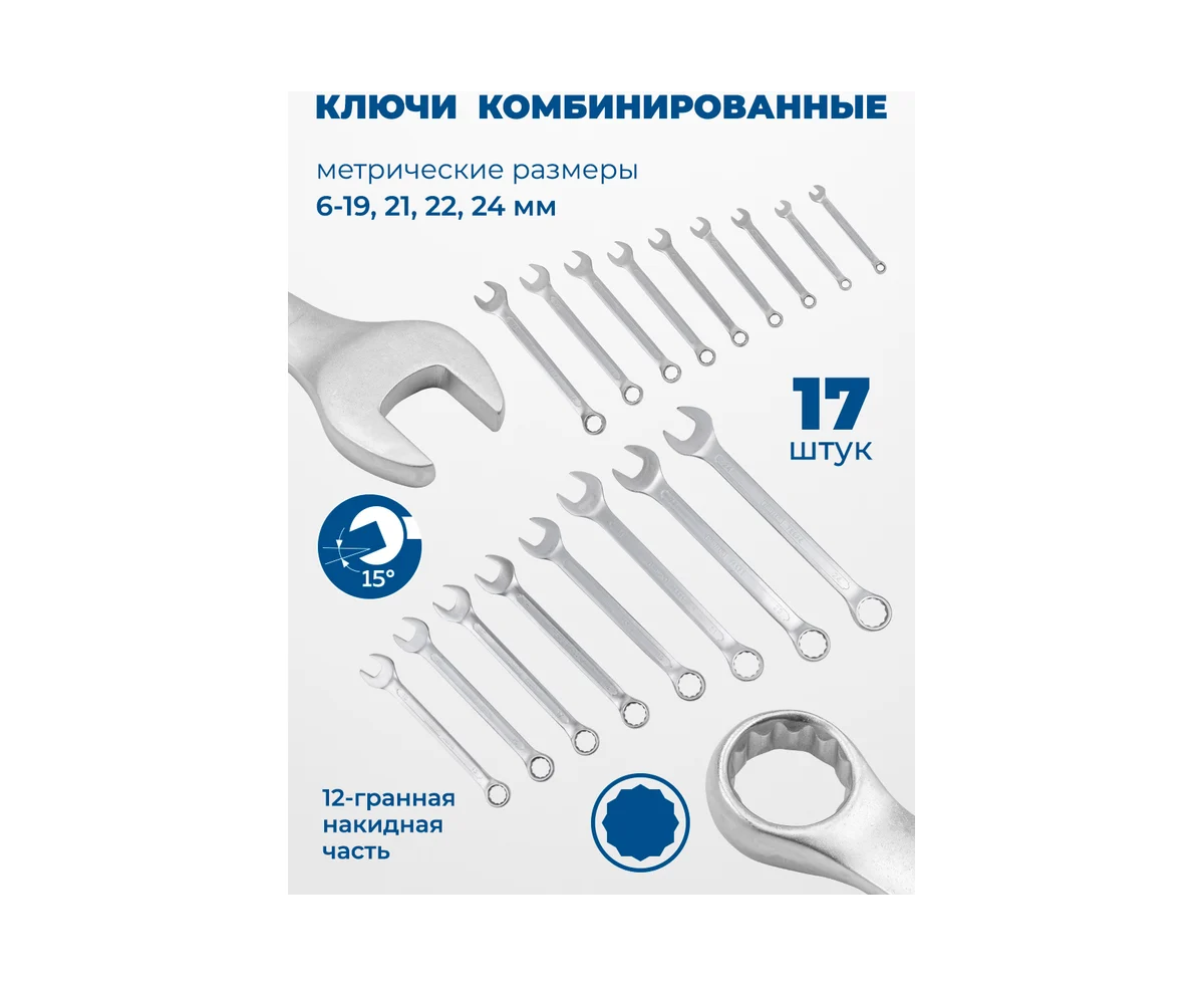 - Ключи комбинированные - 17 шт.;