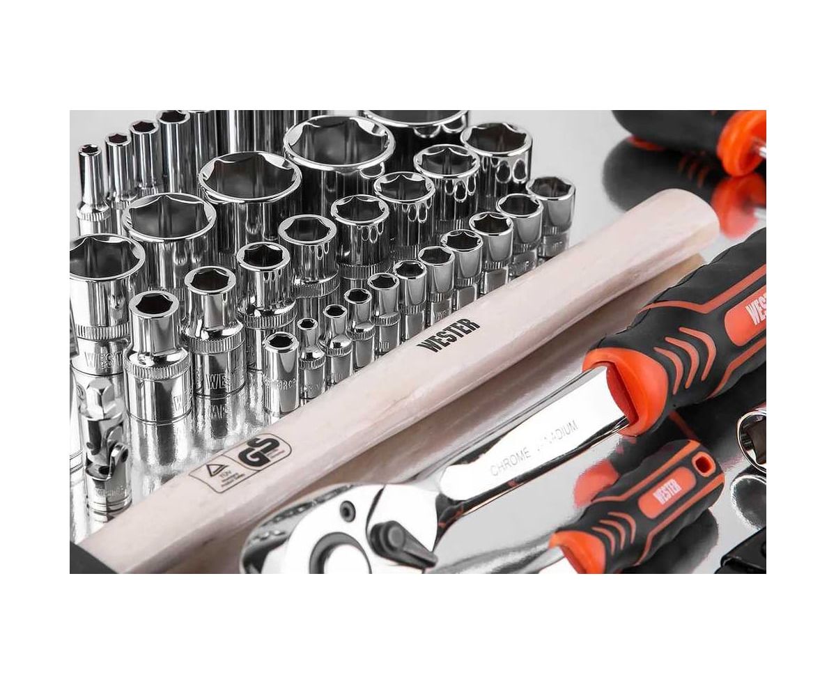 WESTER WT072– набор инструментов, содержит в себе 72 предмета для самых разных ремонтно-монтажных, демонтажных, столярно-слесарных работ. Пригодится дома, в саду, гараже, на производственных участках, автосервисах и станциях техобслуживания.