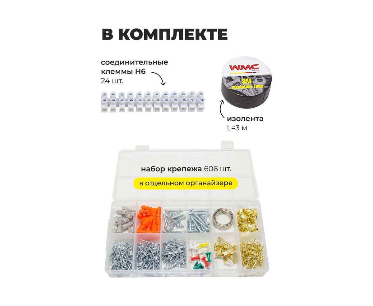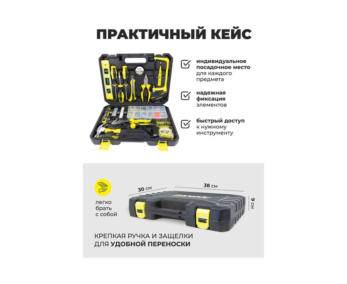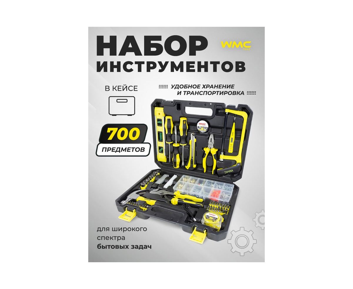 Набор инструментов от бренда WMC Tools из 700 предметов в удобном пластиковом чемодане — это универсальное решение как для профессионалов, так и для домашних мастеров. Он идеально подходит для ремонта квартиры, строительства дачи или благоустройства частного дома.