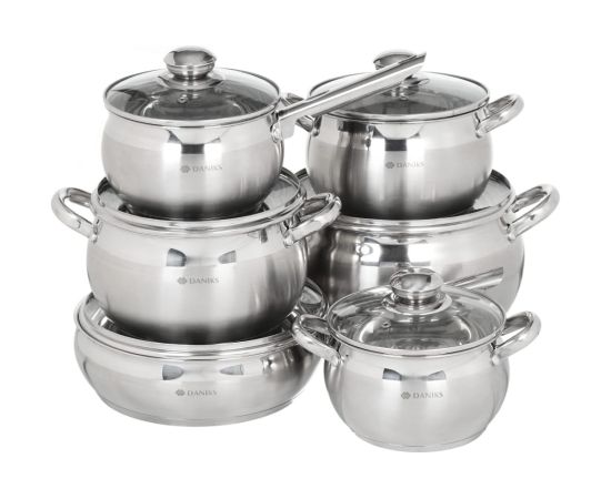 ковш 1.9 л (с крышкой), кастрюли 1.9, 2.9, 3.9, 6.5 л (с крышками), сковорода 24 см (с крышкой)