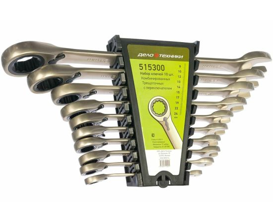 Набор ключей комбинированных Дело Техники 515300 трещоточных с переключателем 10 шт8,10,12,13,14,15,17,19,22,24 мм ДТ/10