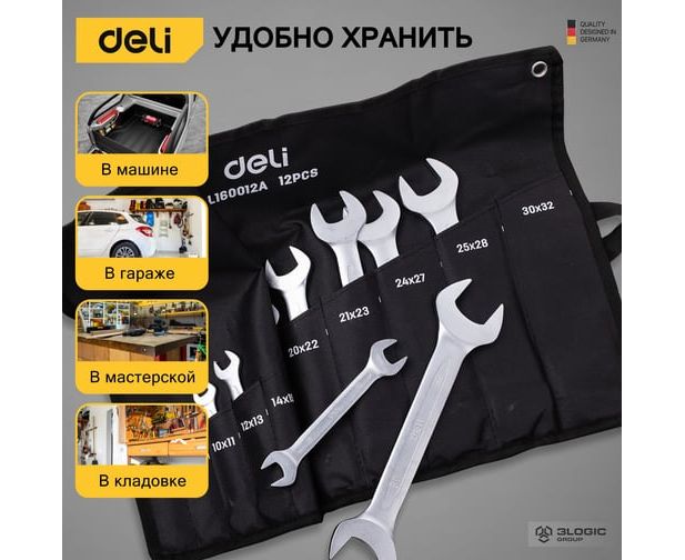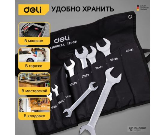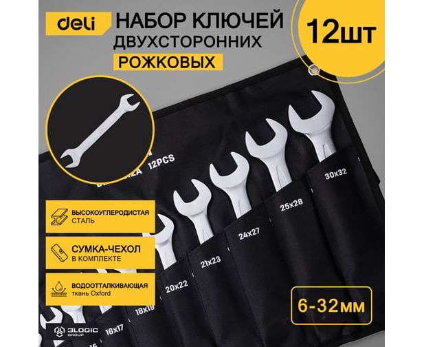 Набор ключей рожковых DELI DL160012A (98323) 10-32мм/12шт