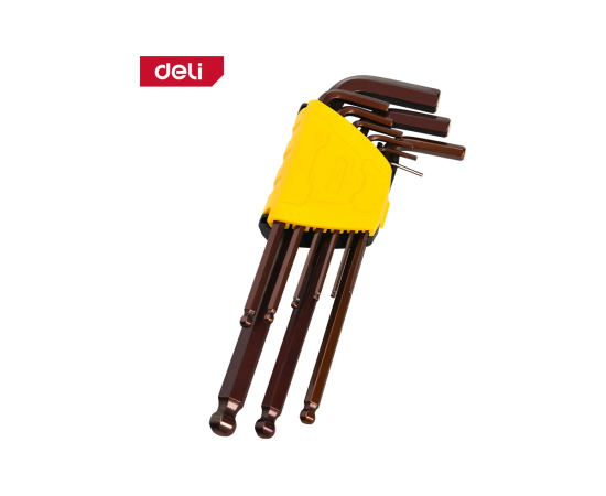 Набор ключей шестигранных Deli DL230709G с шаром удлиненных 9 шт S2, размеры 1,5,2,2,5,3,4,5,6,8,10мм, пластиковый держатель