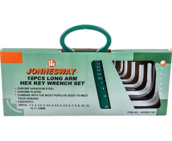 Набор ключей шестигранных Jonnesway H02MH118S (49000) торцевых удлиненных 1,5-19 мм. 18 пр.