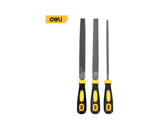 Набор напильников Deli DL352083 – состоит из трех напильников различного назначения (квадратный, круглый, полукруглый) и предназначены для стачивания, сглаживания неровностей кромок и швов заготовок из металла, дерева, пластика.