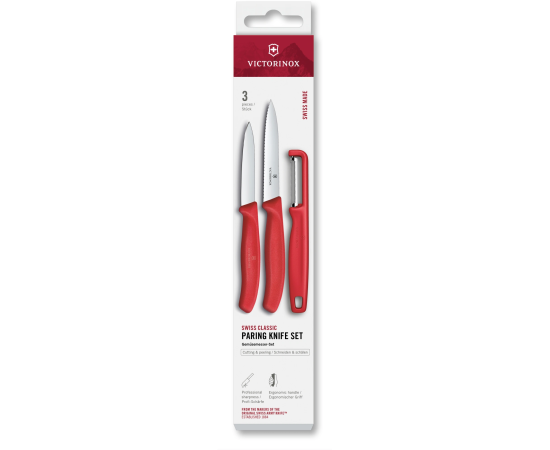 Набор ножей кухонных Victorinox Swiss Classic 6.7111.33C1 для овощей компл. 3предм. овощеч. красный европодвес