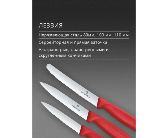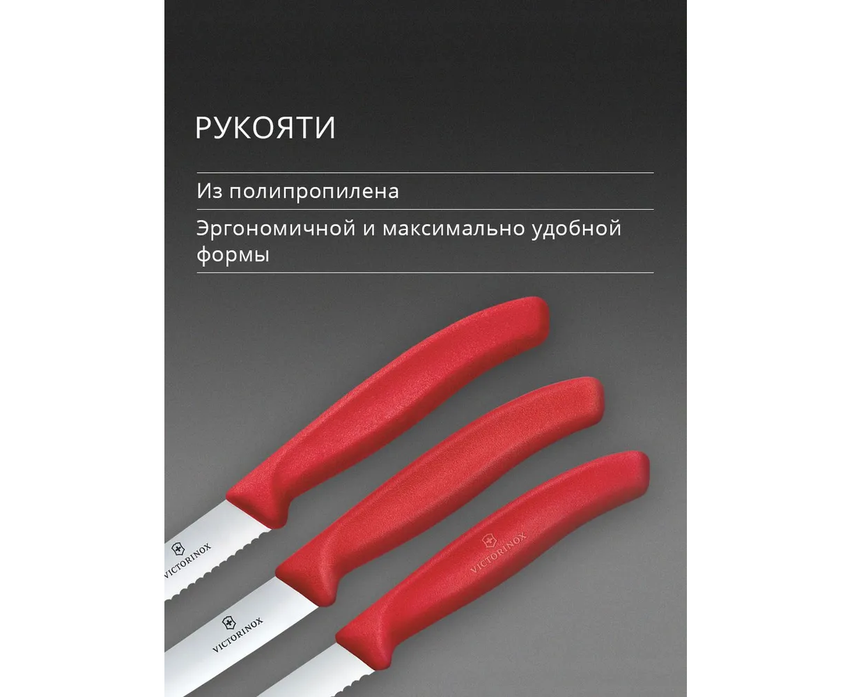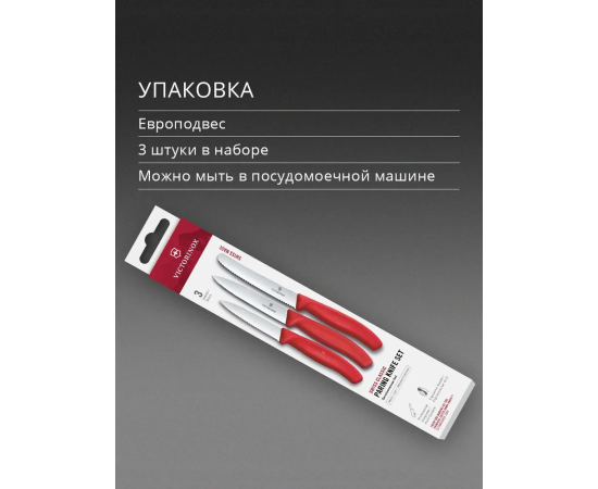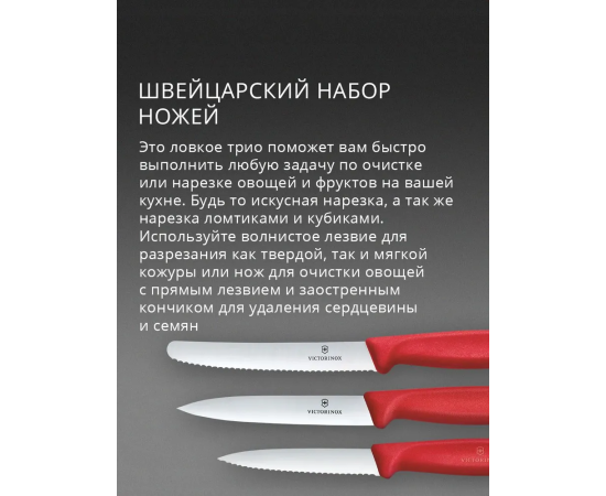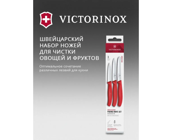 Набор ножей кухонных Victorinox Swiss Classic 6.7111.34C1 для овощей компл. 3предм. красный европодвес