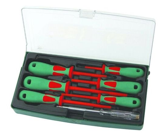 Описание: Предназначен для проведения электротехнических работ. Набор отверток диэлектрических PH# 0х60, 1х80, 2х100, SL 4х100, 5.5х125, 6.5х150 мм, индикаторная отвертка 220-250V