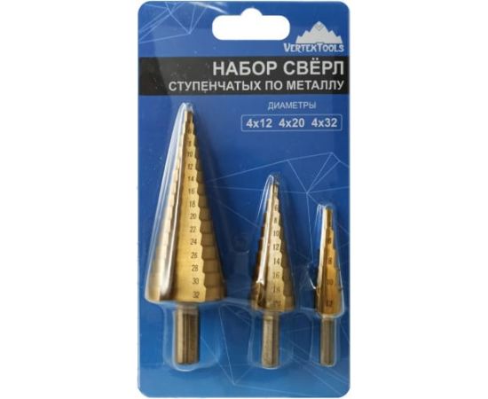 Набор ступенчатых сверел Vertex Tools 4-12-4-20-4-32 4-12мм, 4-20мм, 4-32мм
