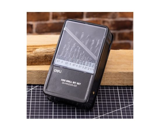 Набор сверл по металлу DELI hss DH-MHZ025-ED1 (112193) 1-13мм(1-13мм, 25шт) металлический кейс 112193