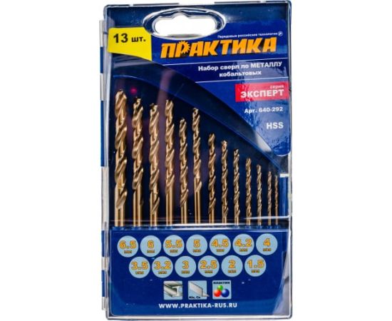 Набор сверл по металлу ПРАКТИКА Эксперт 640-292 кобальтовые 13 шт