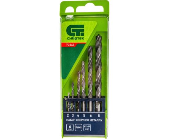 Набор сверл СИБРТЕХ 72348 по металлу, 2-8 мм 6 шт